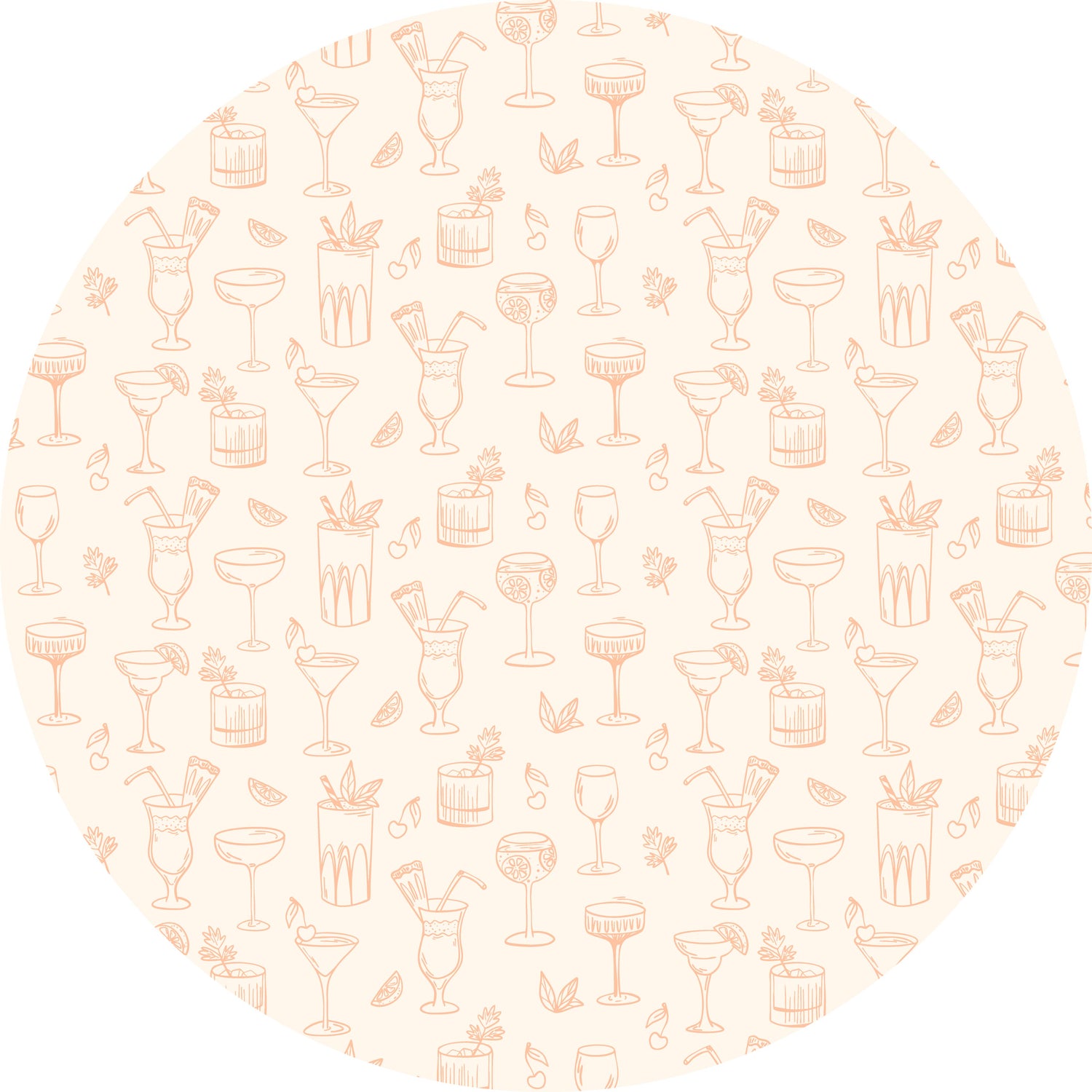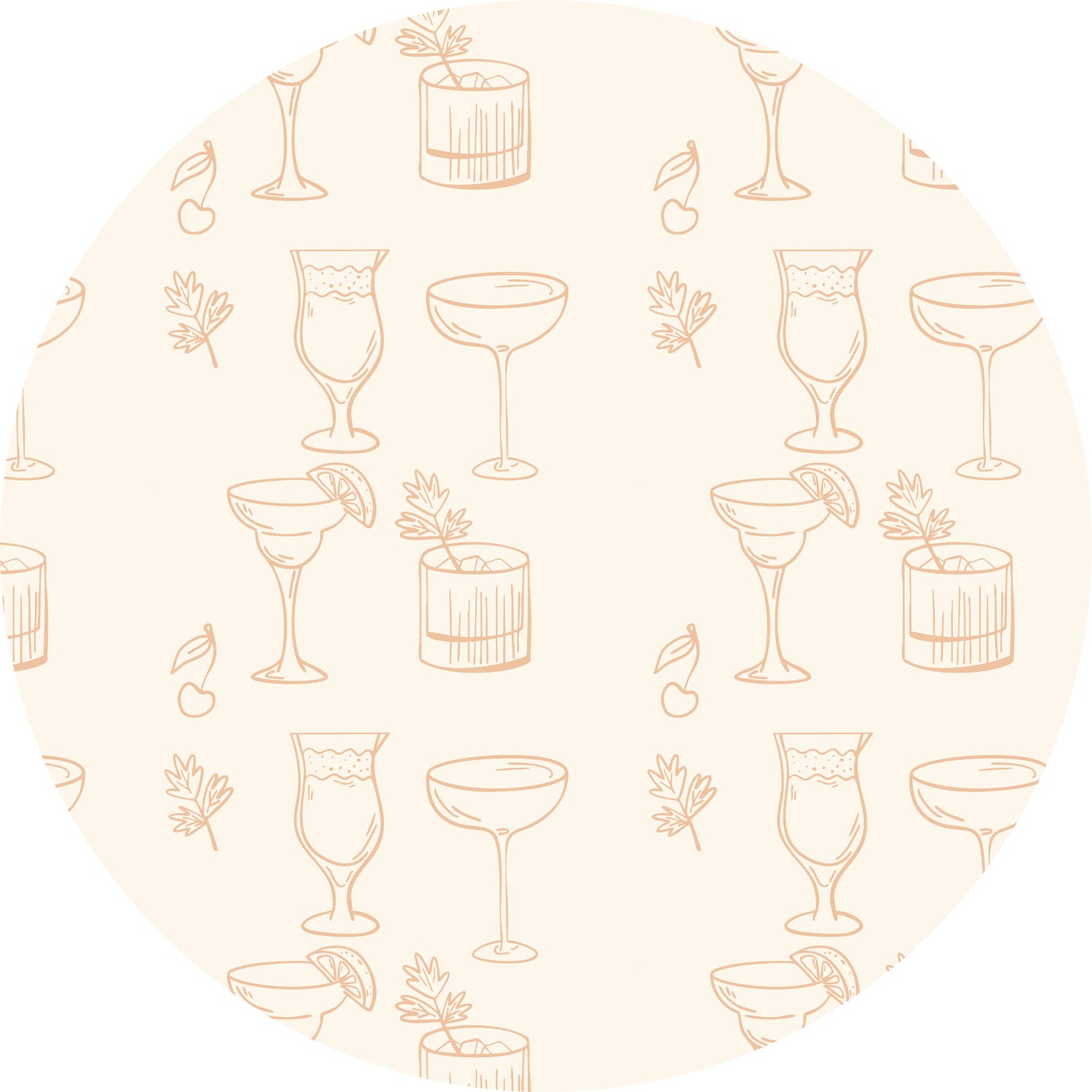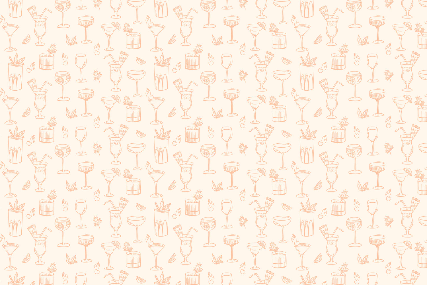- Stylish Cocktail-Inspired Design – Martini glasses, citrus slices, and garnishes in soft orange line art.