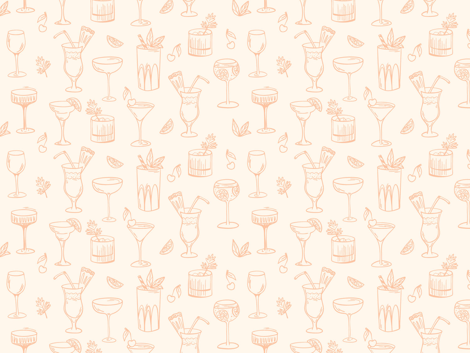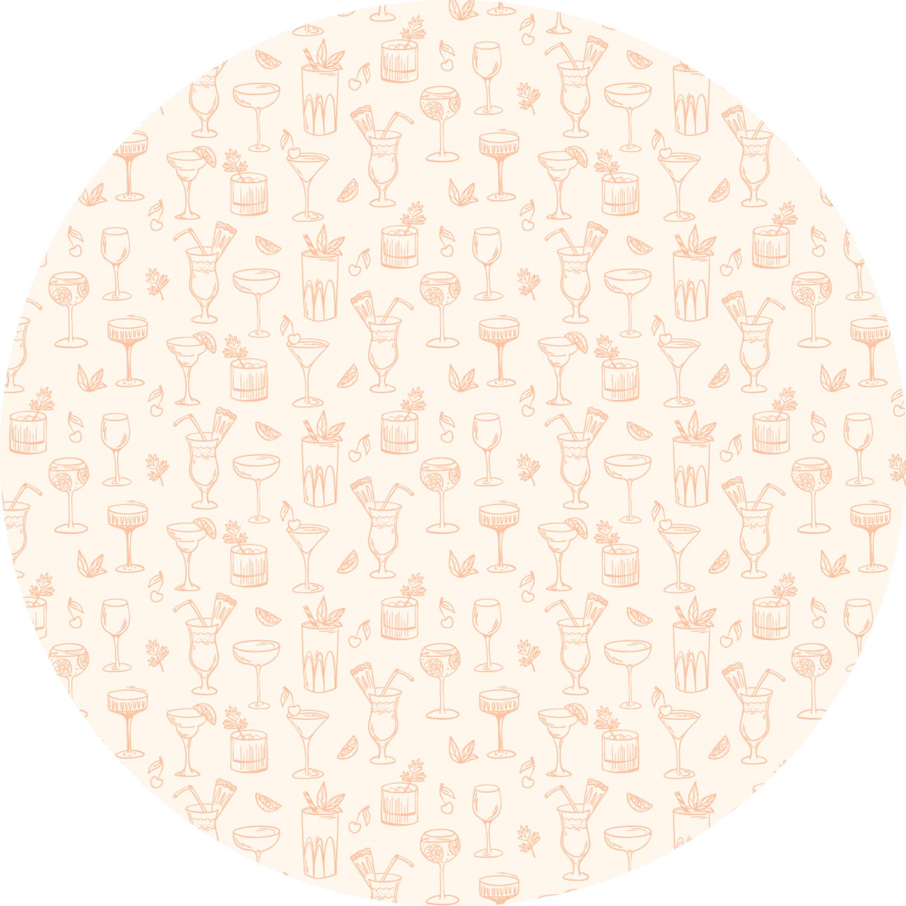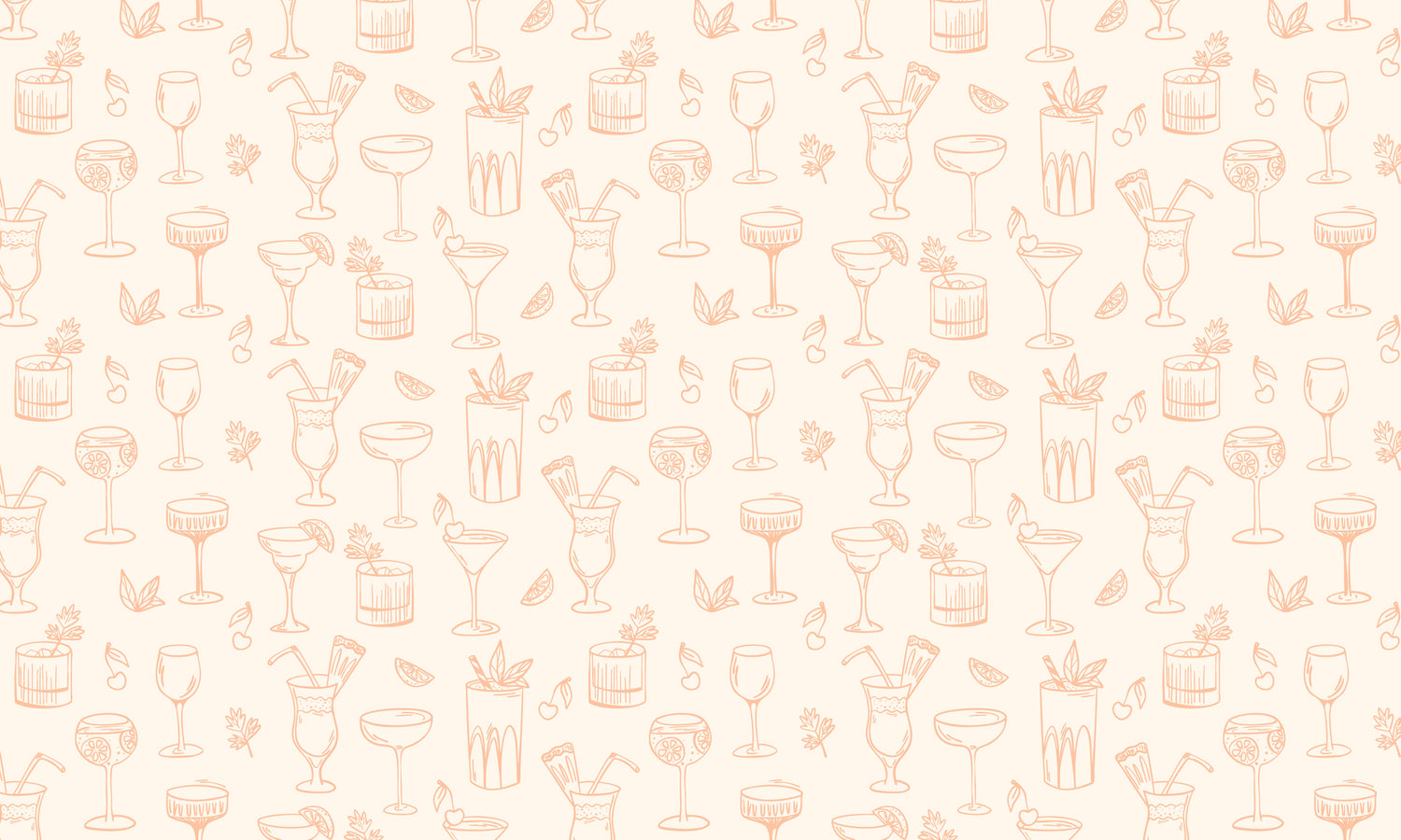 - Stylish Cocktail-Inspired Design – Martini glasses, citrus slices, and garnishes in soft orange line art.