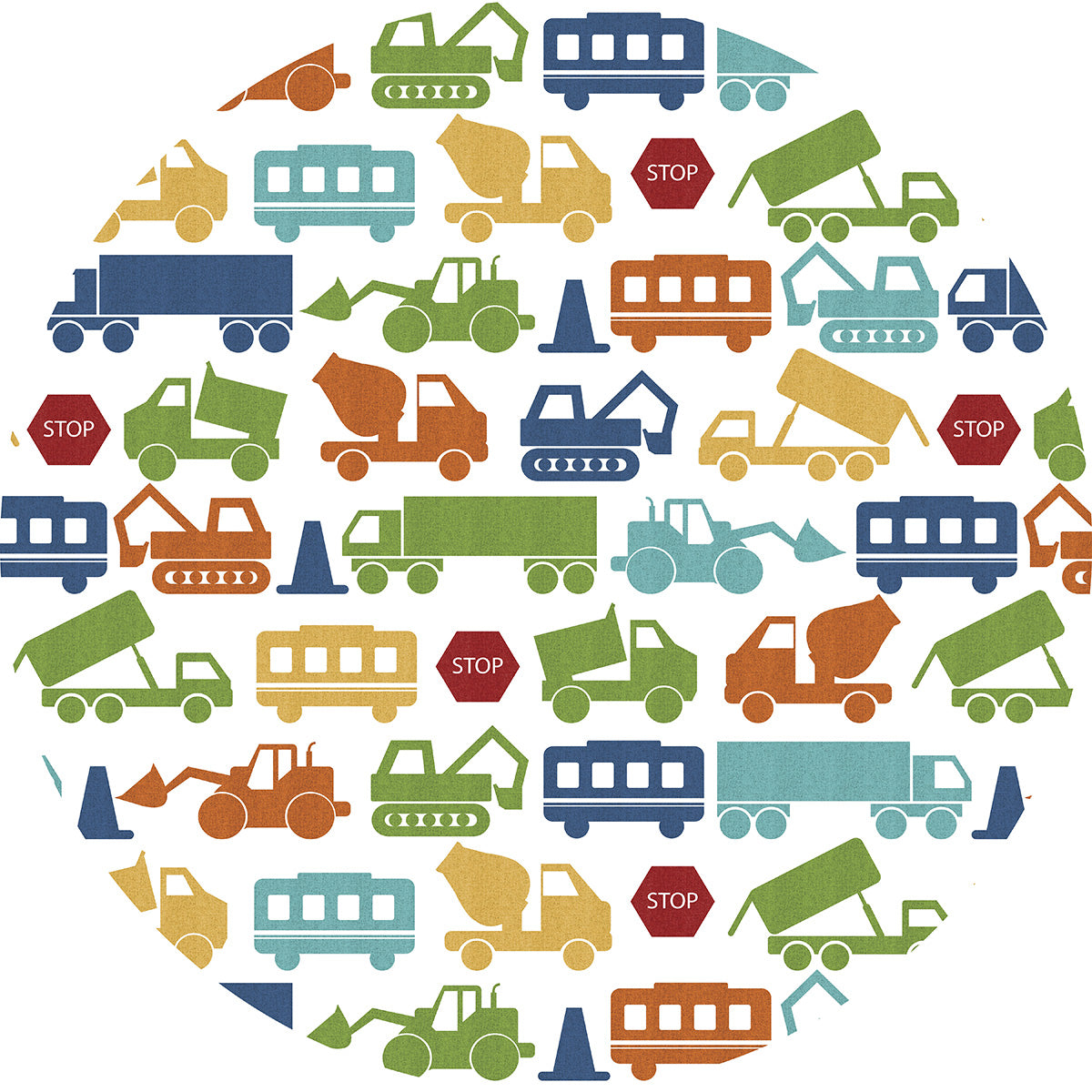 The Diggers and Trucks pattern is whimsical and sophisticated. The design is perfect for any kid's room as flooring or wallpaper.
