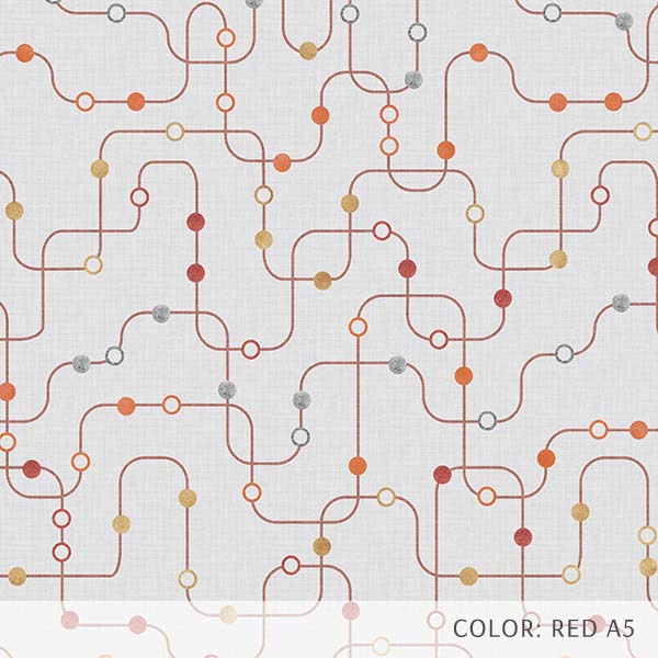 The Underground was inspired by the London subway system. With its interlacing and overlapping lines and polka dots, the pattern depicts multiple stops and transfer stations. It is ideal for residential, hospitality and education environments. Use this designs on wallpaper or on flooring to create a unique atmosphere.