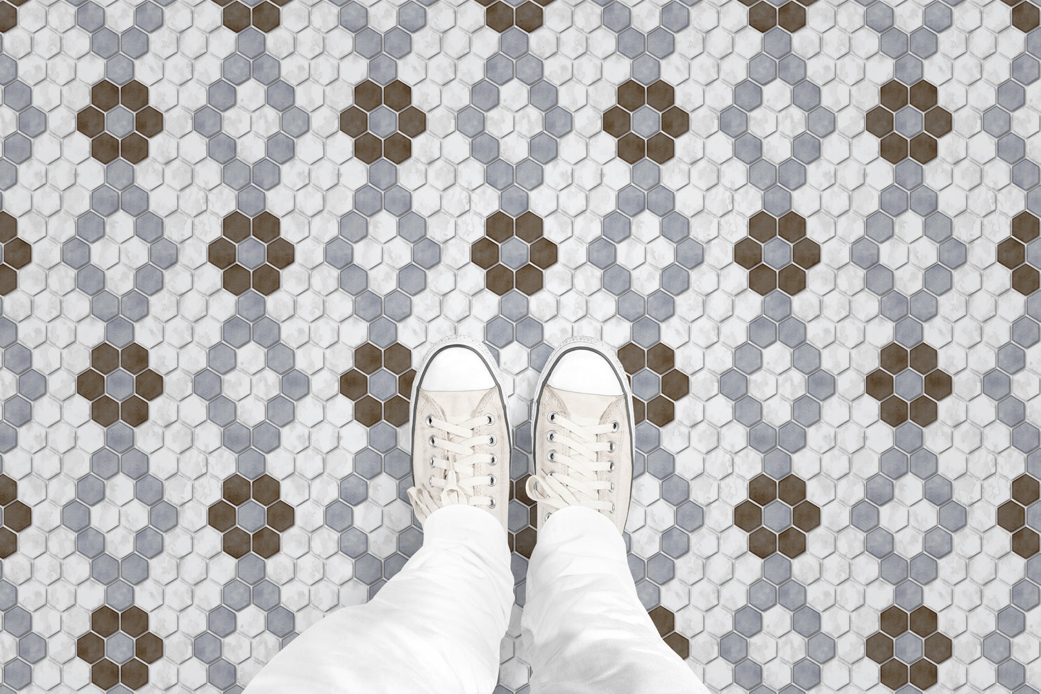 Washington Tile is a geometric layout that gives a sophisticated feel. Highlights and texture add dimension, giving this pattern the look of real tile. Perfect for any residential or commercial interior on flooring or wallcovering.