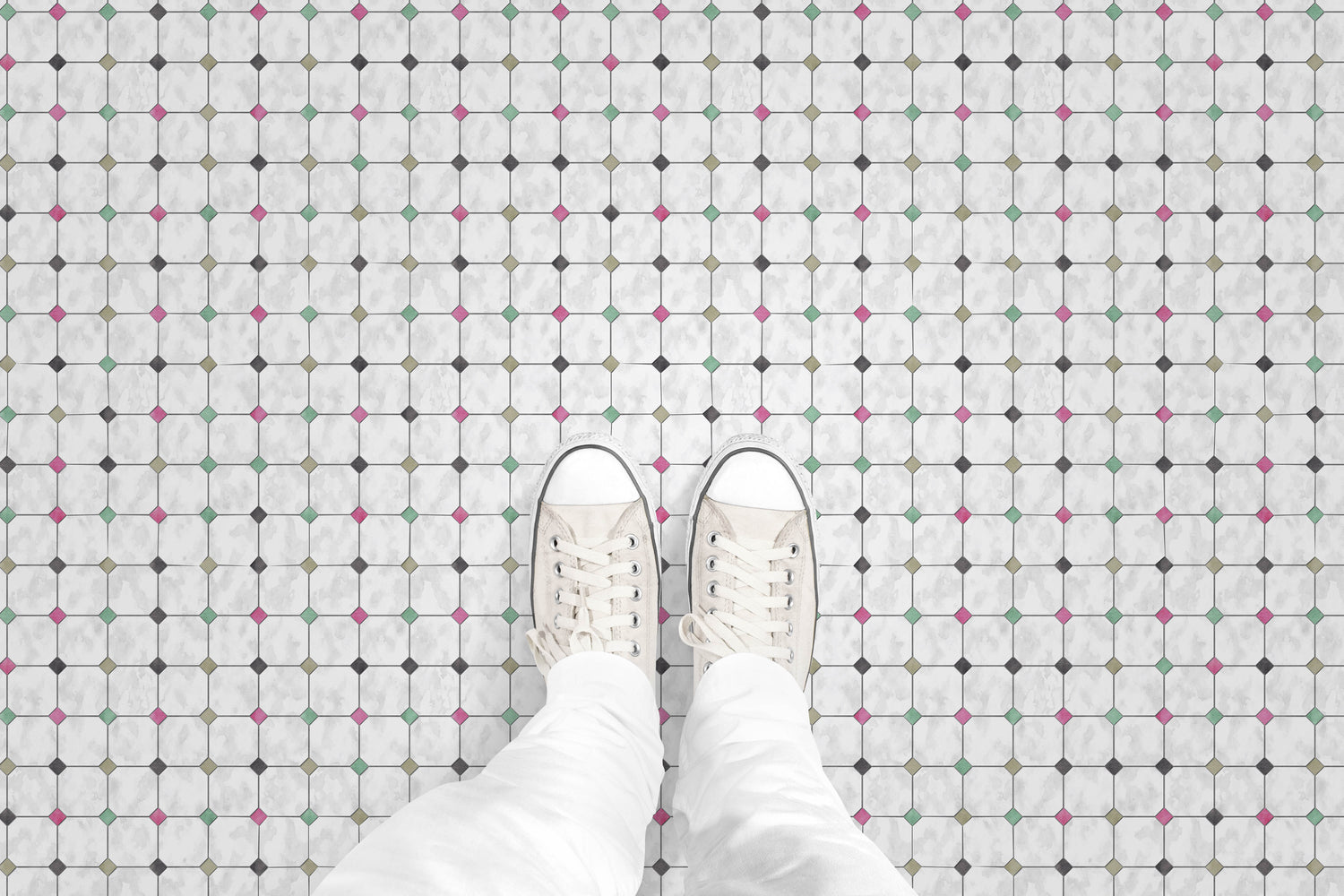 Tinson Tile Pattern is a fun and colorful pattern inspired by tiles from Kristen's childhood home. This pattern is perfect for rooms needing a touch of whimsy and color. Use on flooring or wallcovering in any residential or commercial interior.