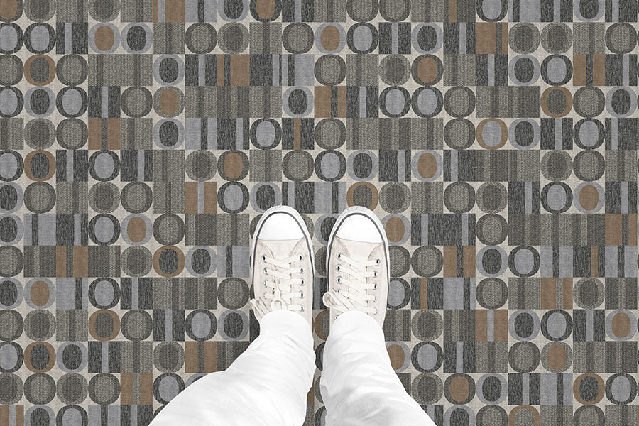 Five Languages pays homage to WWII codebreaker Agnes Meyer Driscoll by using binary code to spell her name. Agnes spoke 5 languages and was instrumental in breaking the Japanese Red and Blue Books. This modern geometric plays with texture to give the look of a woven cloth. This pattern is ideal for hospitality, office, and education interiors. Use on flooring, wall coverings and more.