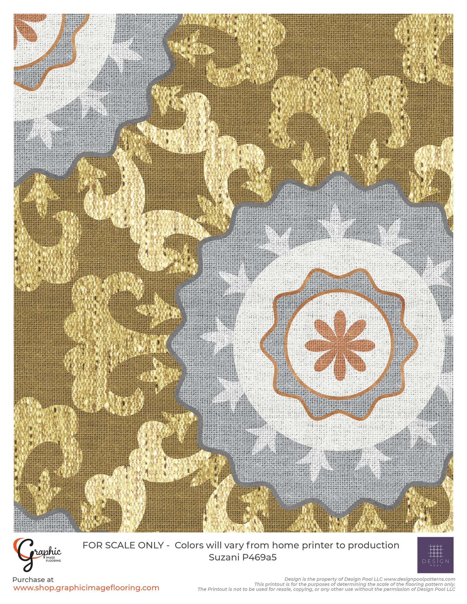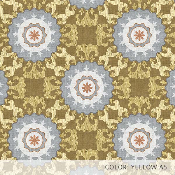 Suzani designs originated in the central Asian countries and was traditionally embroidered and created with a medallion motif. The designs are ideal for home hotel or restaurant environments. The colors palette is saturated and sophisticated making an ideal pattern for floors and rugs.