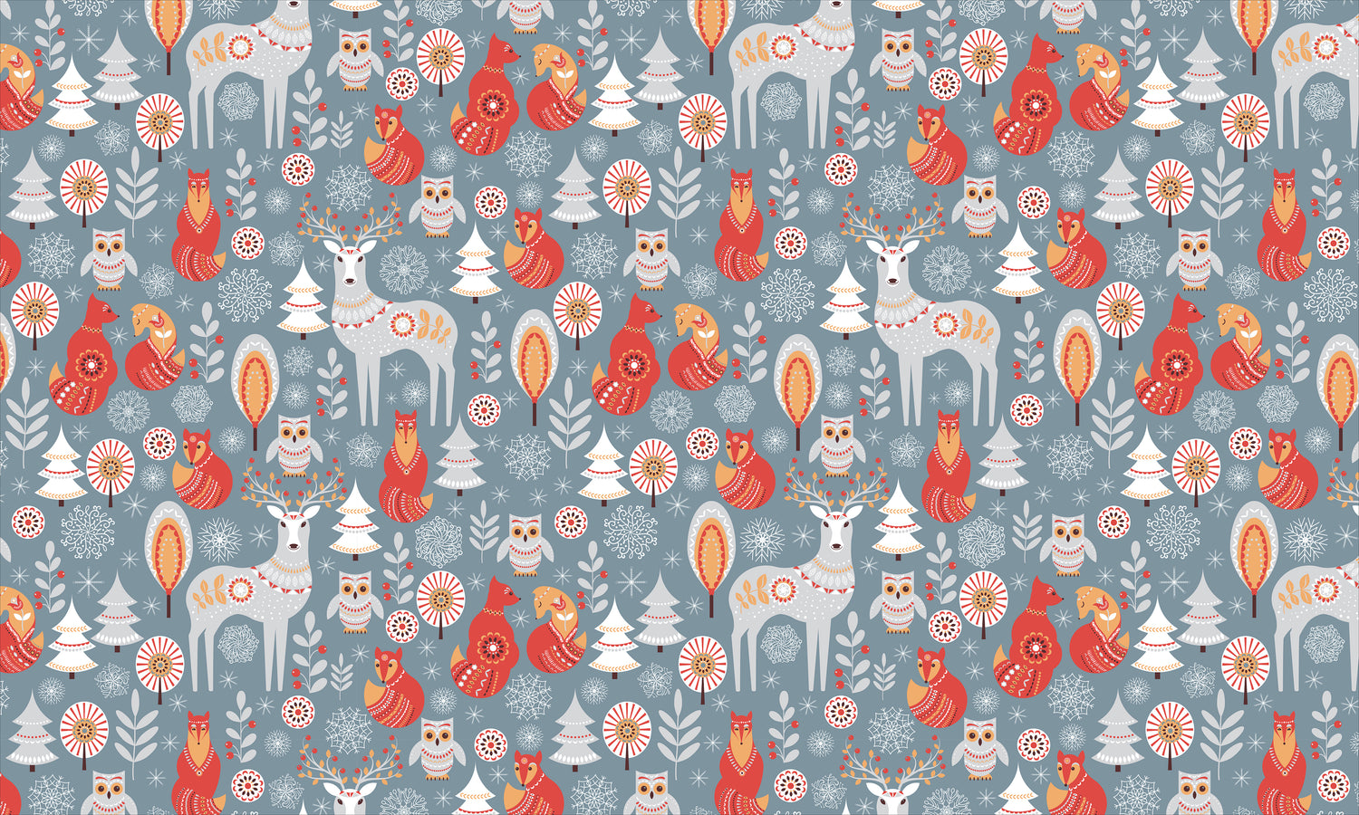 Our Folklore Animals Berber Impressions Mat features a delightful collection of woodland creatures—foxes, owls, deer, and more—illustrated in a charming folk-art style. Set against a soft wintery blue background with intricate snowflakes and stylized trees, this enchanting design adds warmth, personality, and seasonal cheer to your home
