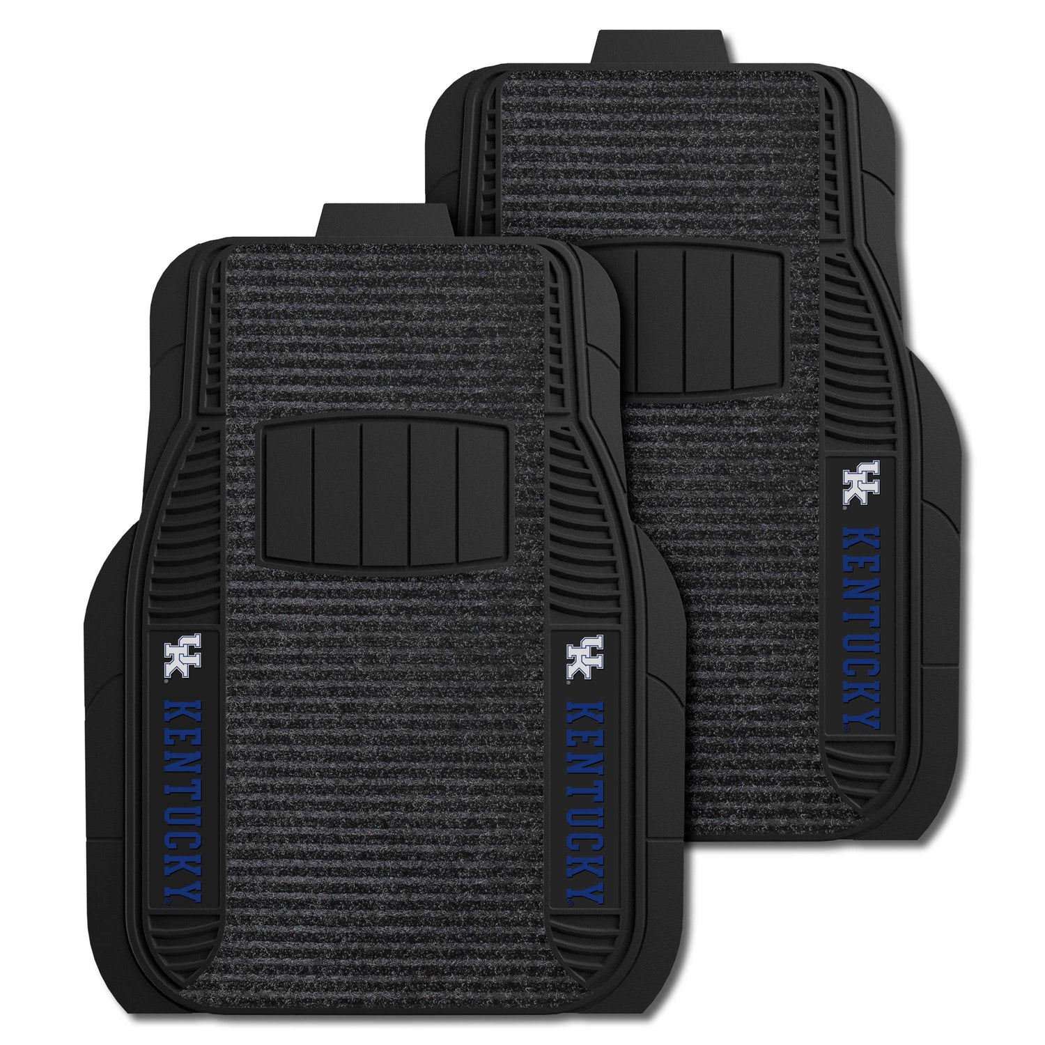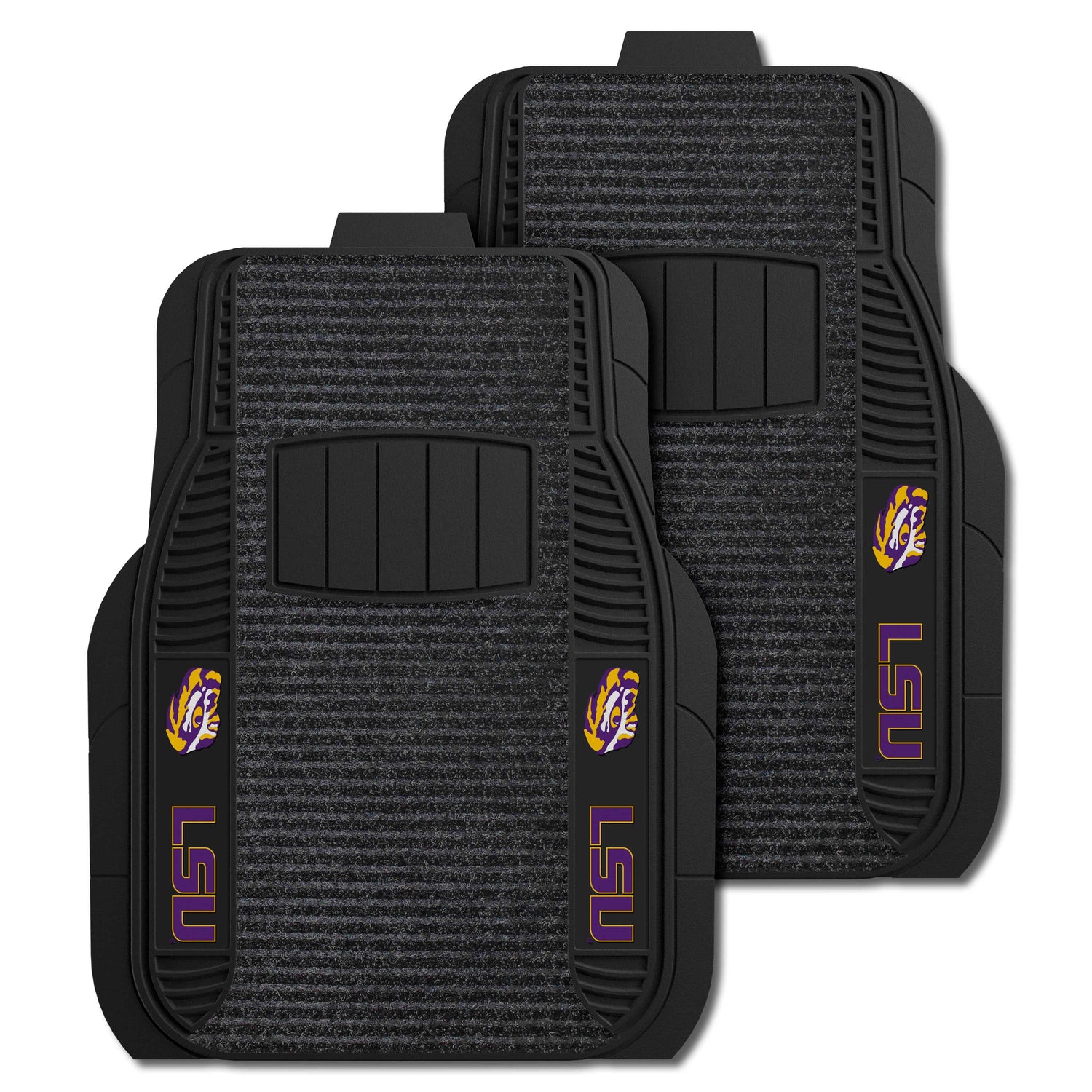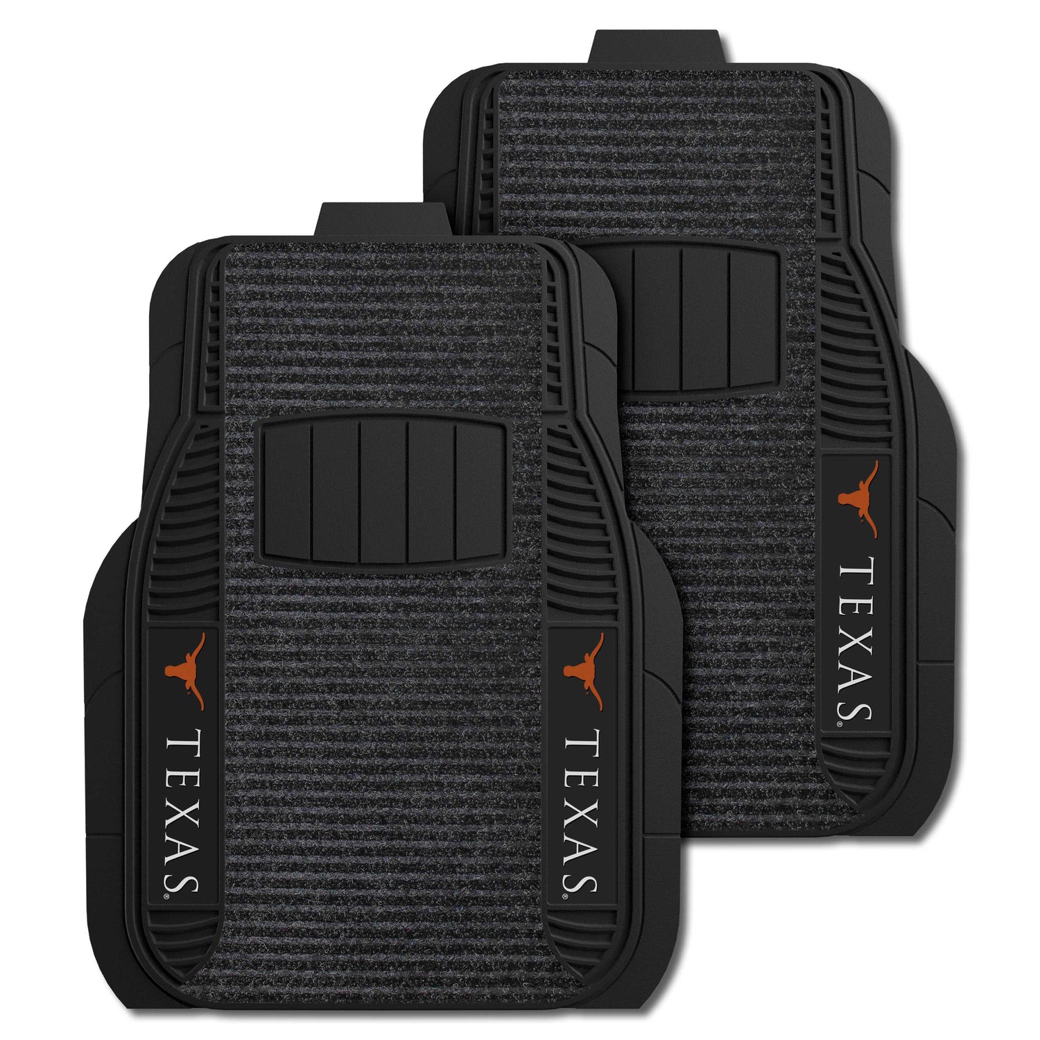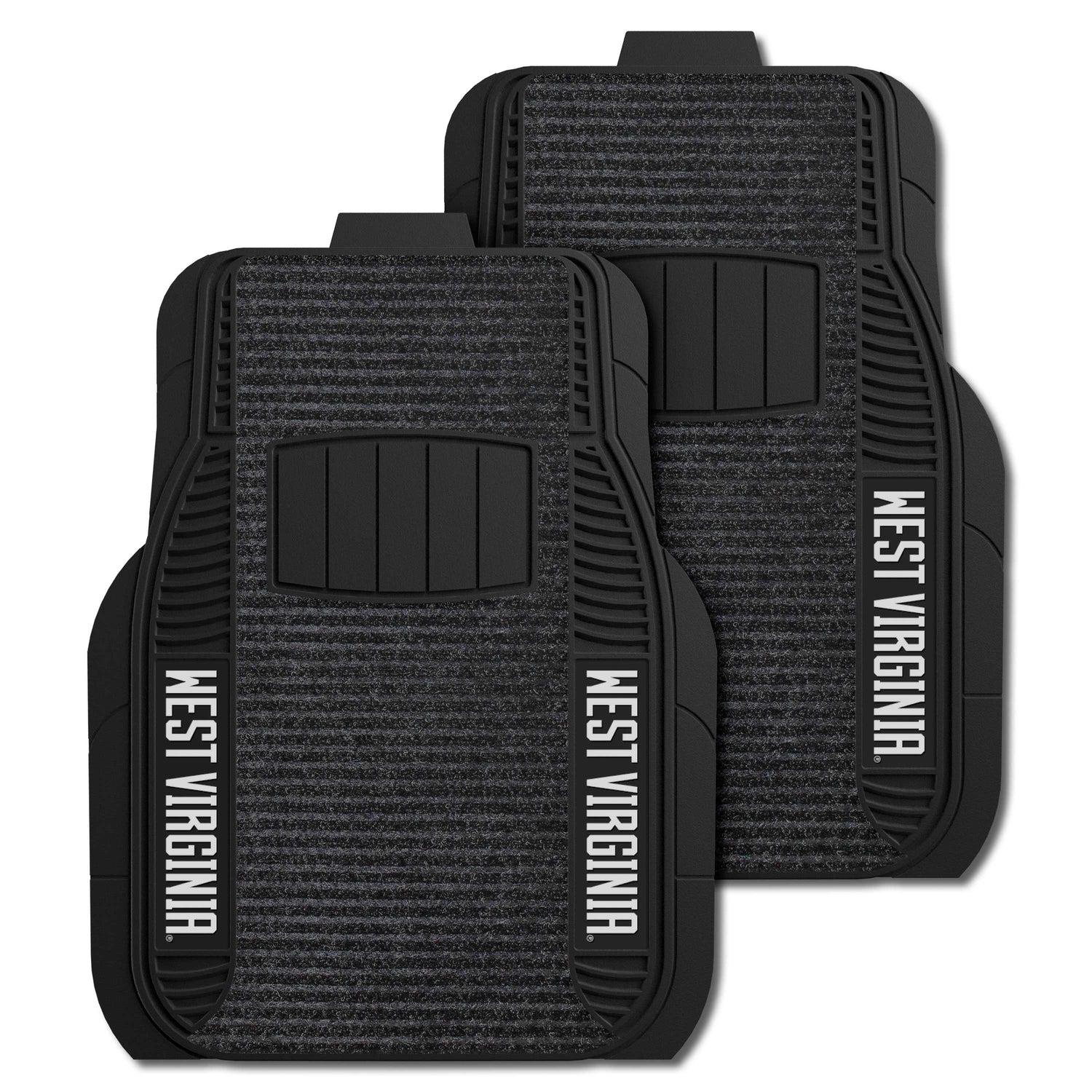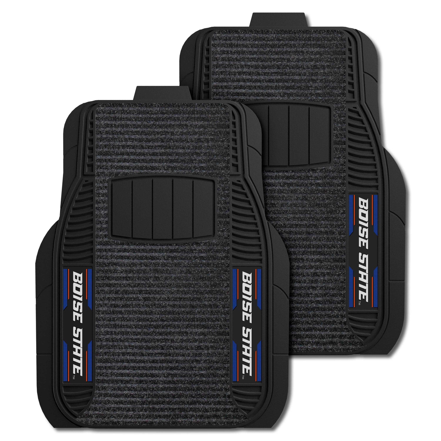 2 Piece Deluxe Car Mat Set is the perfect combination between our Vinyl and Carpet Car Mats. The base and edges are made from Vinyl, but there is a carpeted overlay down the middle. Vinyl construction adds stability and longevity to the mat, while the carpeted area is ribbed to scrape your shoes clean and trap the debris.
