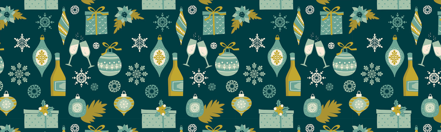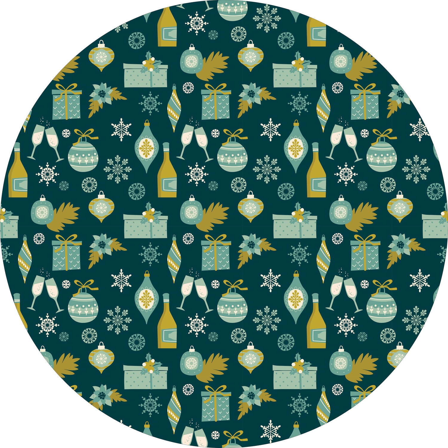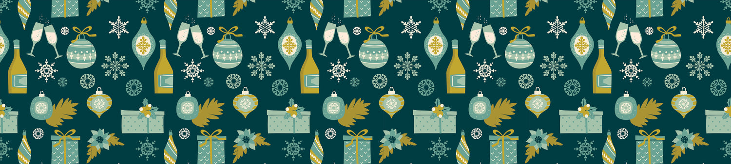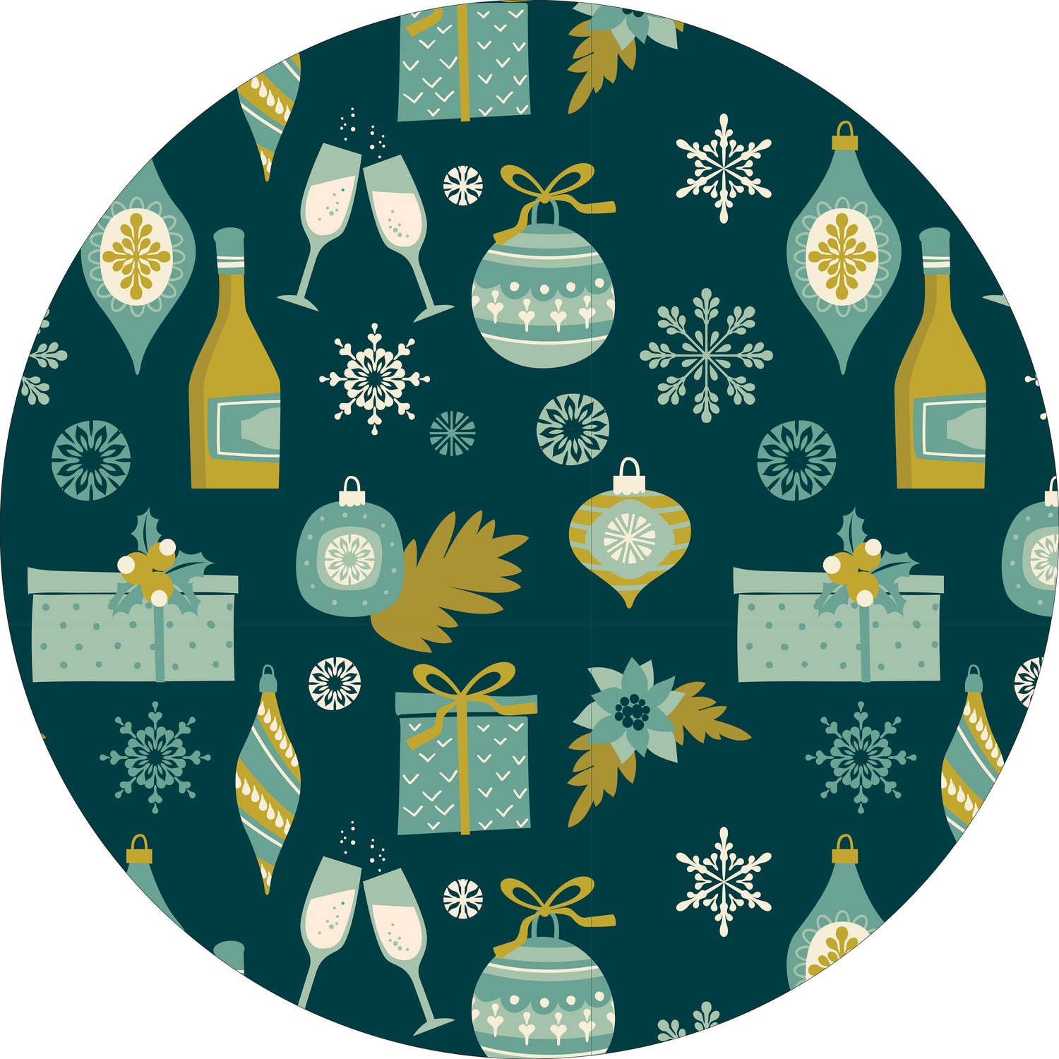 Raise a toast to the holidays with our Holiday Cheers Vinyl Mat! This elegant mat features a festive mix of champagne glasses, ornaments, and snowflakes in shimmering gold, teal, and ivory tones — the perfect accent for your kitchen, bar area, or dining room this season.