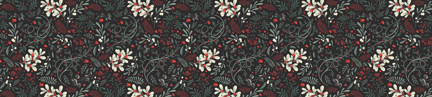 Bring warmth and sophistication to your kitchen with our Winter Foliage Vinyl Mat. Featuring a rich black background adorned with cream florals, deep red berries, and lush green leaves, this mat adds a refined seasonal touch that beautifully complements both modern and traditional interiors.