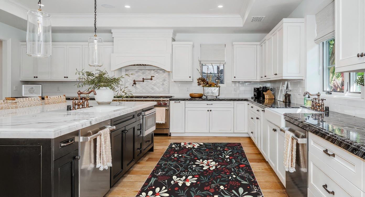 The Winter Foliage Vinyl Kitchen Mat blends durability with beautiful, seasonally inspired style. It protects your floors, enhances your décor, and makes time spent in the kitchen more comfortable — all while being easy to maintain.
