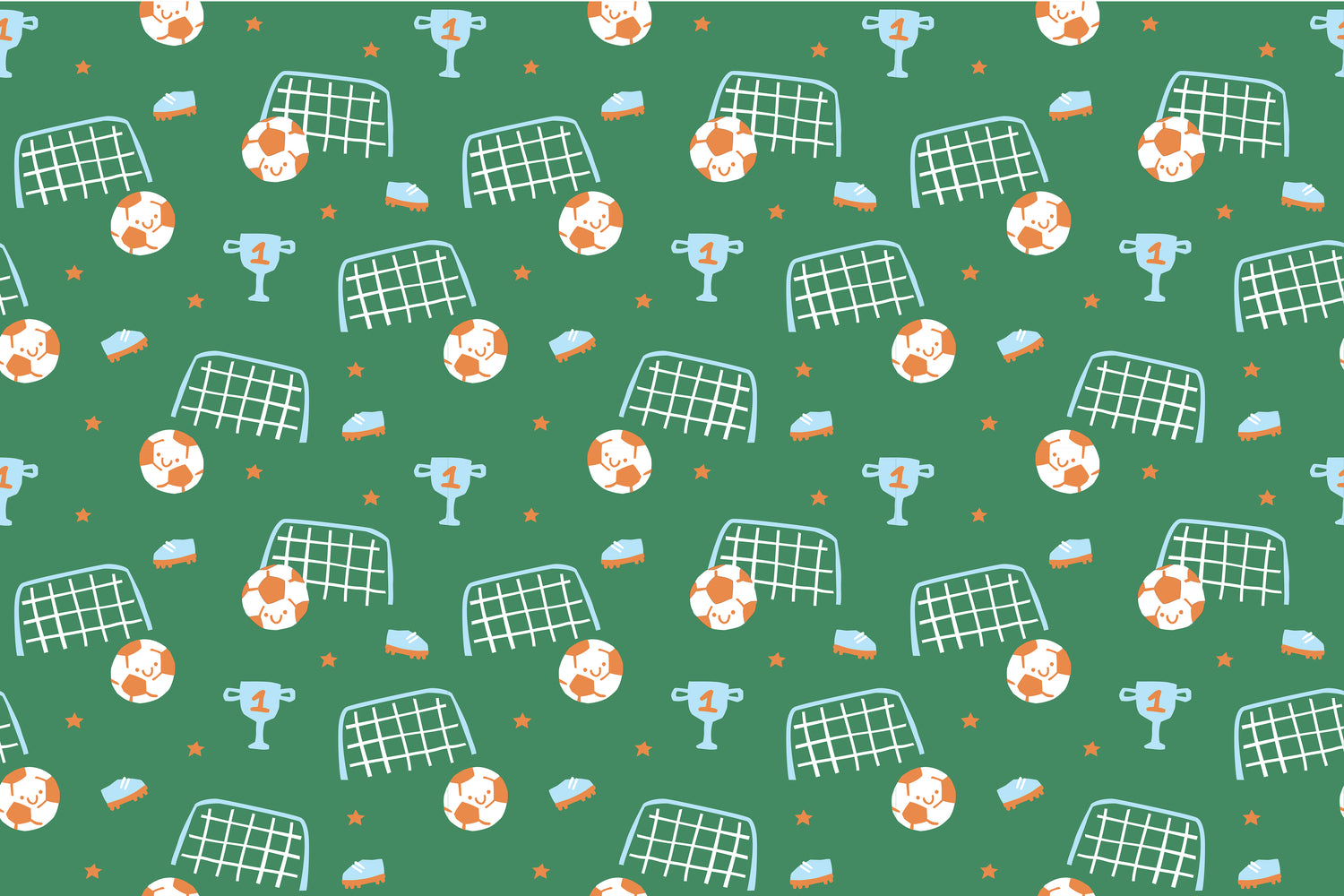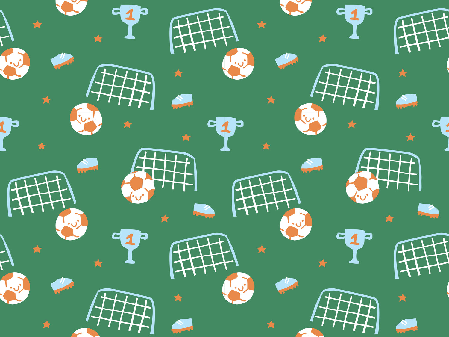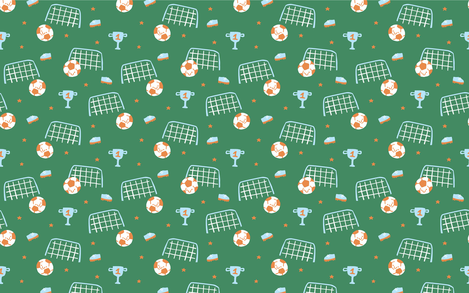 - Fun Soccer-Themed Design – Cheerful soccer balls, goals, cleats, trophies, and stars in bright, kid-friendly colors.
