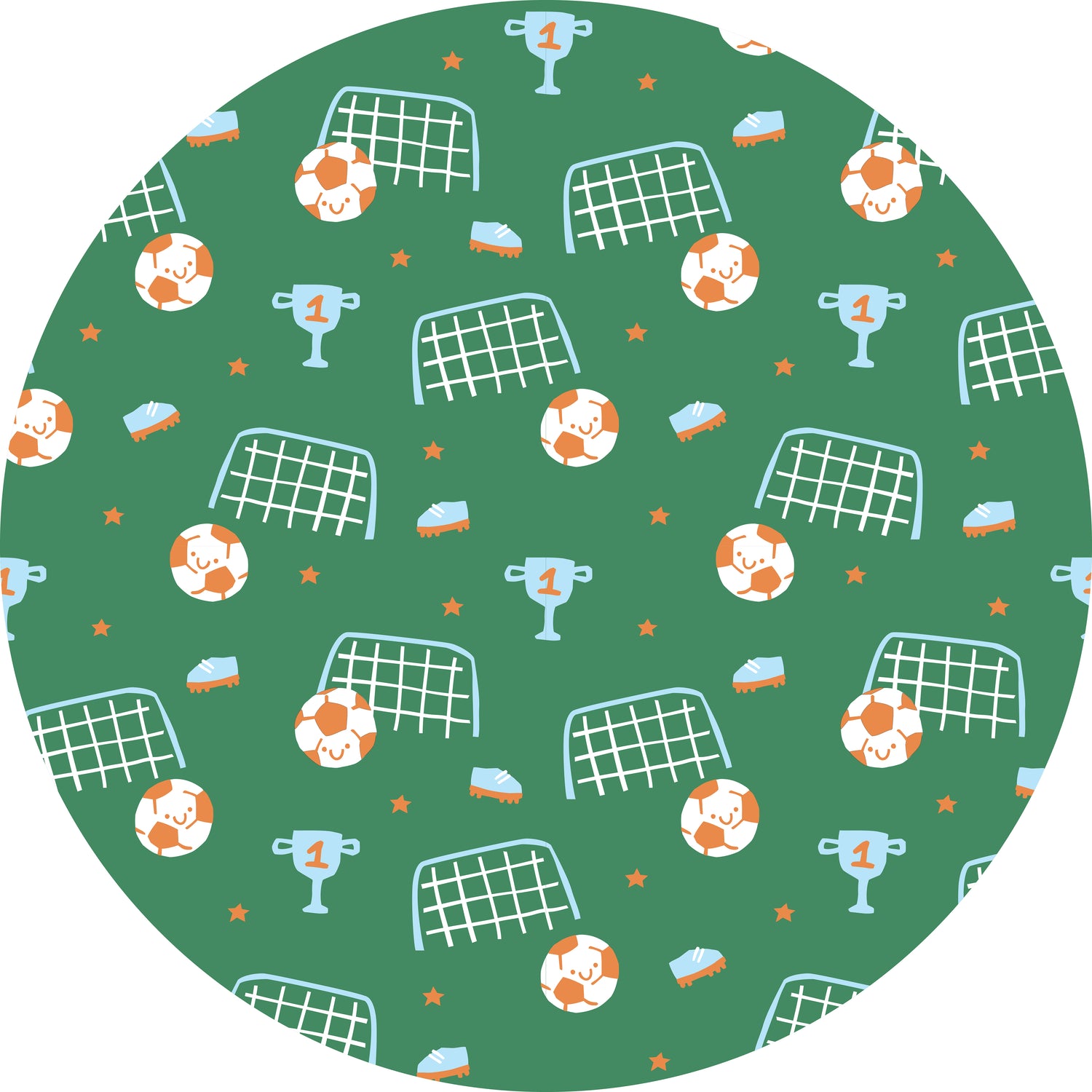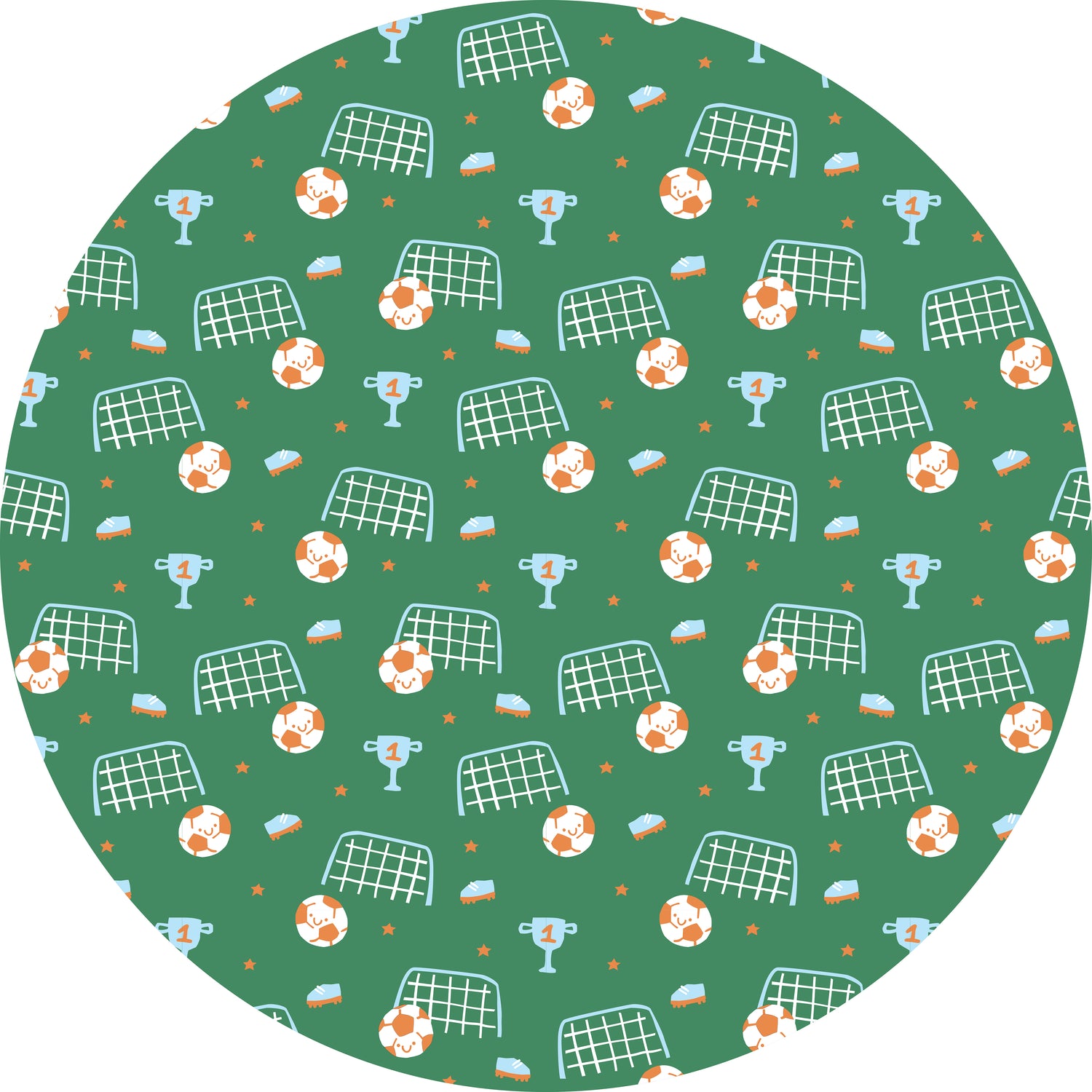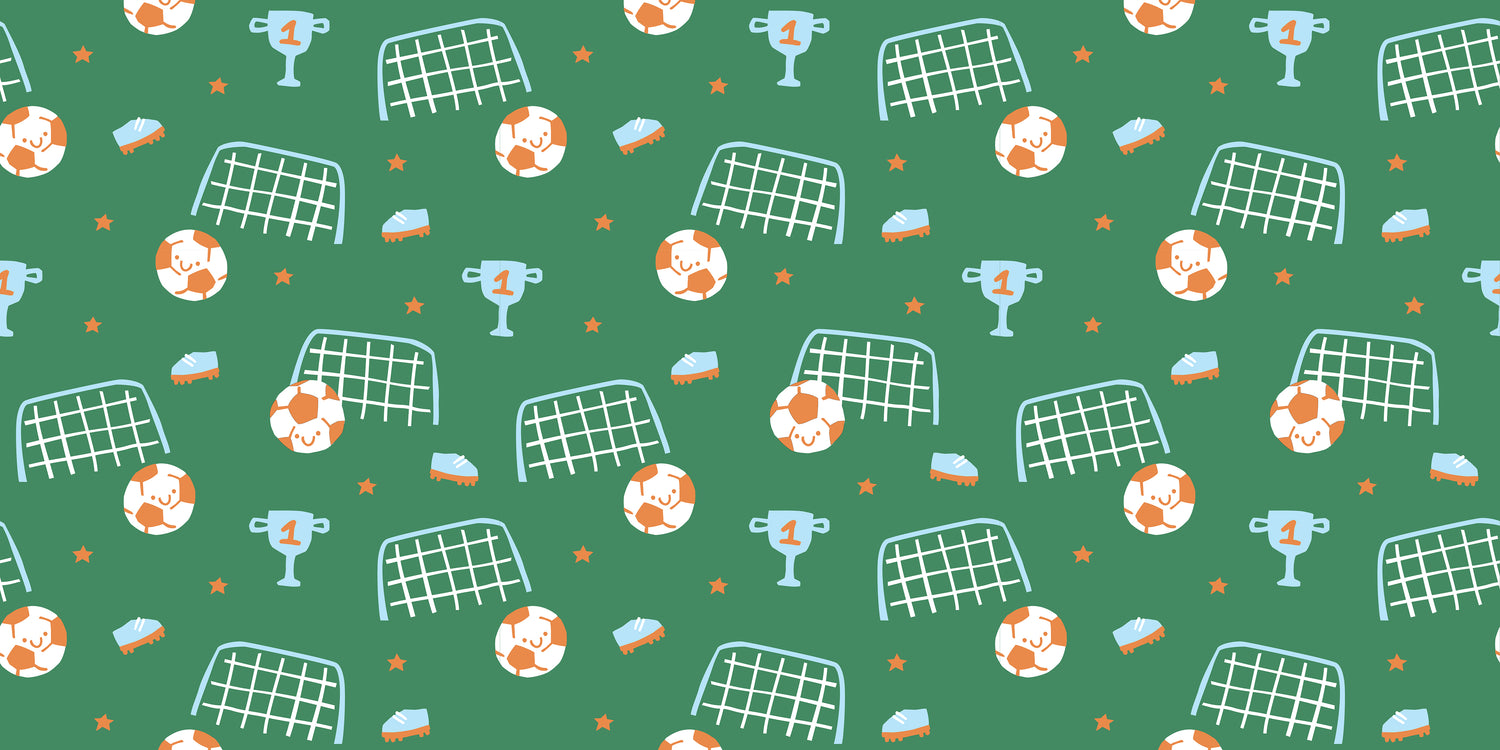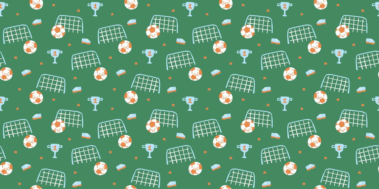 Kick up the fun with our Soccer Green vinyl floor mat, featuring playful soccer-themed illustrations — smiling soccer balls, goal nets, cleats, trophies, and stars — on a vibrant green background. Perfect for kids’ rooms, play areas, and sports-themed spaces, this mat adds energy and personality while protecting your floors.