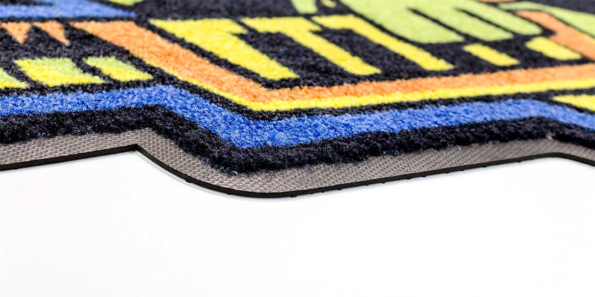 Light background colors should be avoided due to their tendency to show dirt on the mat more than a darker or neutral tone. We also advise against the use of screens, tints, and transparencies in the design because they are not easily converted to our color palette.