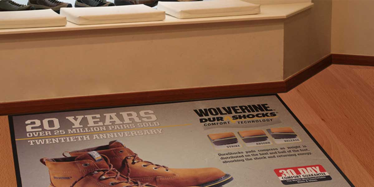 Floor Impressions mats feature your custom logo or artwork overlaid onto 3/16" solid nitrile rubber. Multi-color images are created by molding a digitally printed polymetric material into the durable nitrile rubber surface of the mat.
