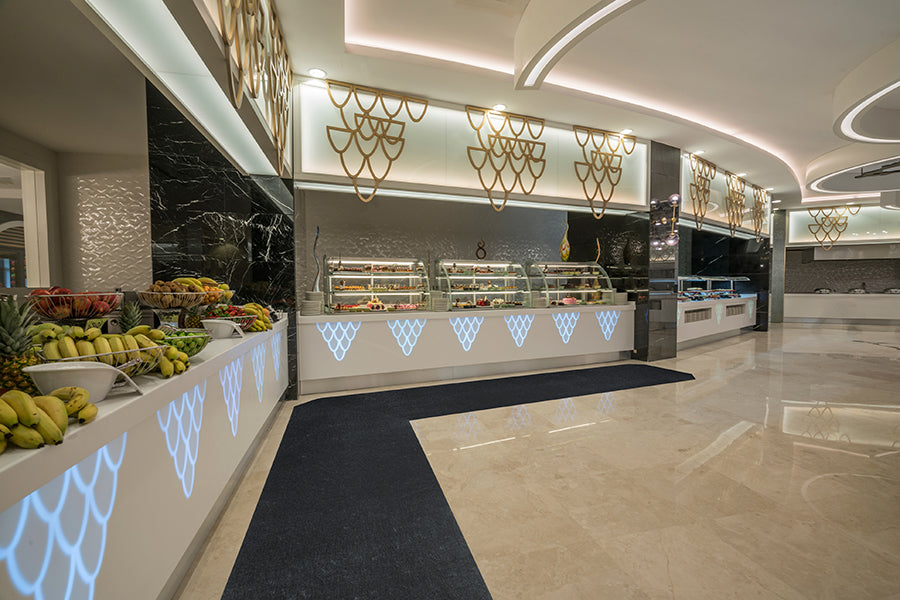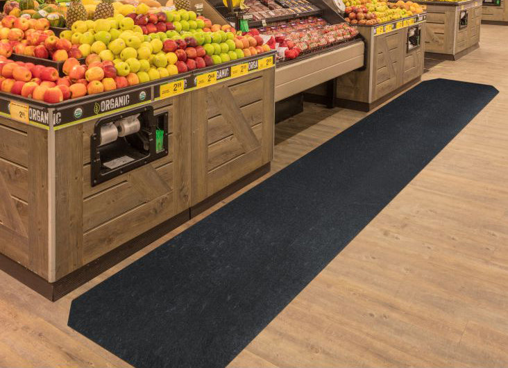 - Stays in Place - Adhesive backing keeps mat flat and in place, even with heavy cart and buggy traffic