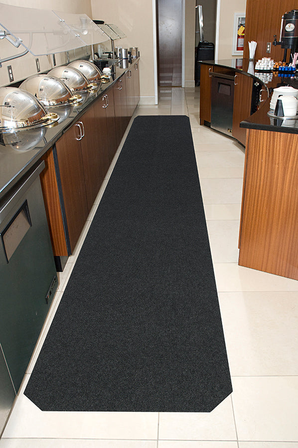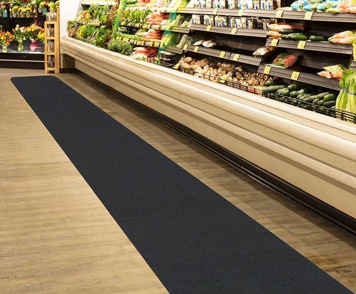 - Stays in Place - Tacki-BackTM adhesive keeps mat flat and in place, even with heavy cart and buggy traffic