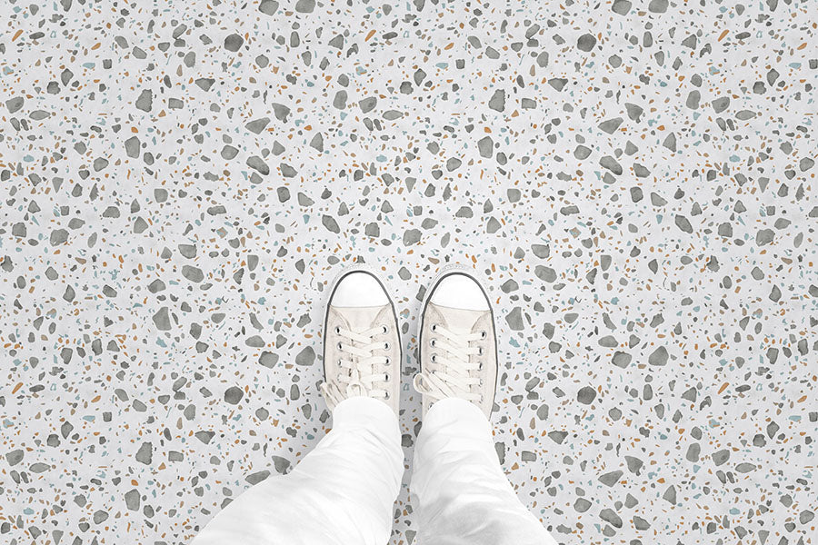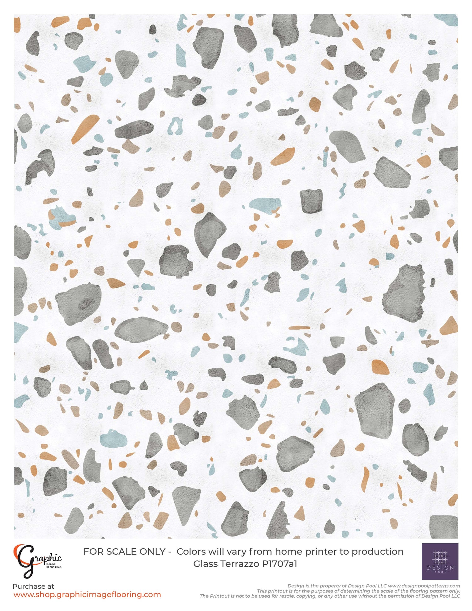 Glass Terrazzo captures the look of real glass terrazzo without any stone or glass. Subtle texture in the shapes gives the illusion of real glass and is appropriate in any residential or commercial interior. A perfect solution for vinyl flooring.