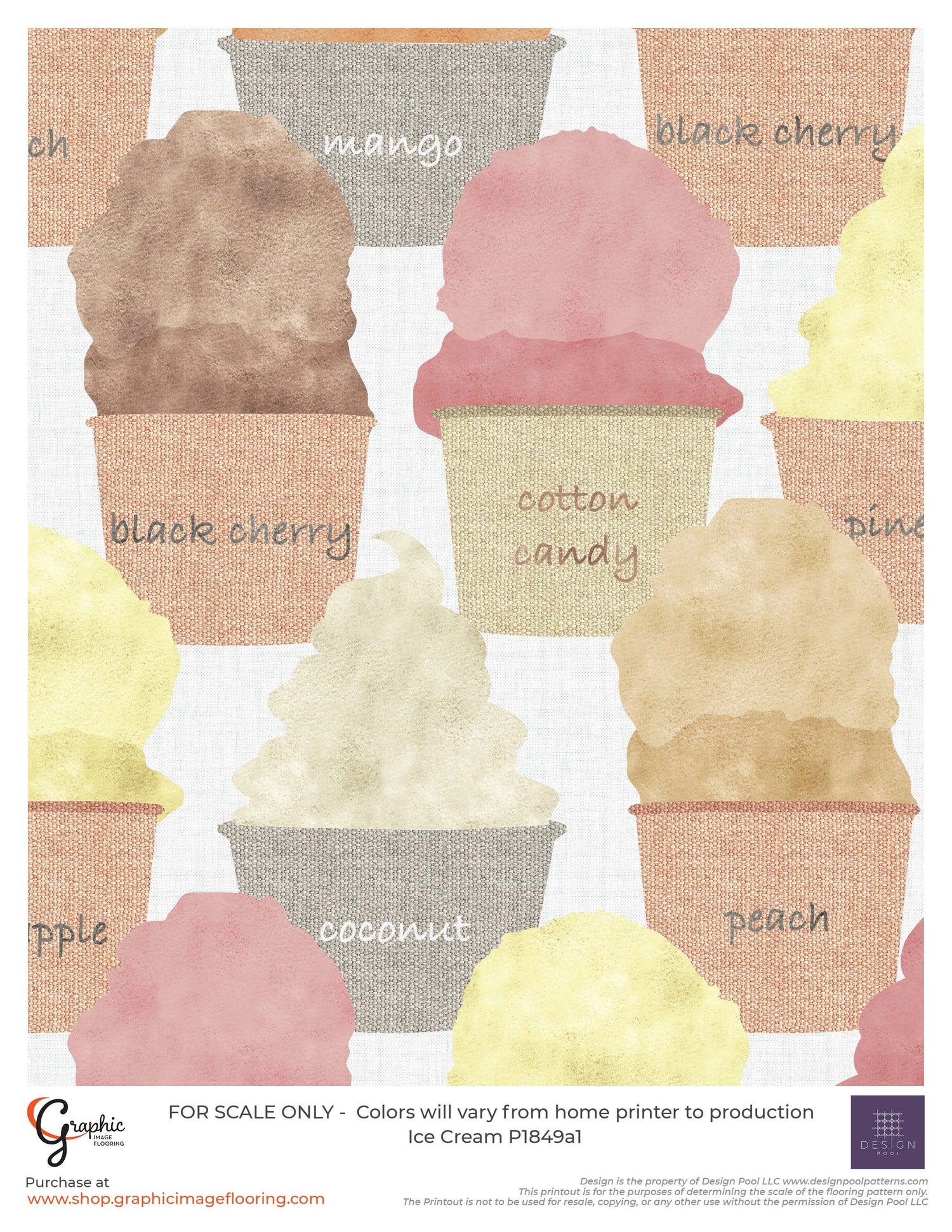 Ice Cream is a fun and artful novelty print perfect for pediatric spaces or dessert shops. Colorful and flavorful, this pattern uses a watercolor technique mixed with a linen texture to create this whimsical design. Perfect for flooring or wallpaper.