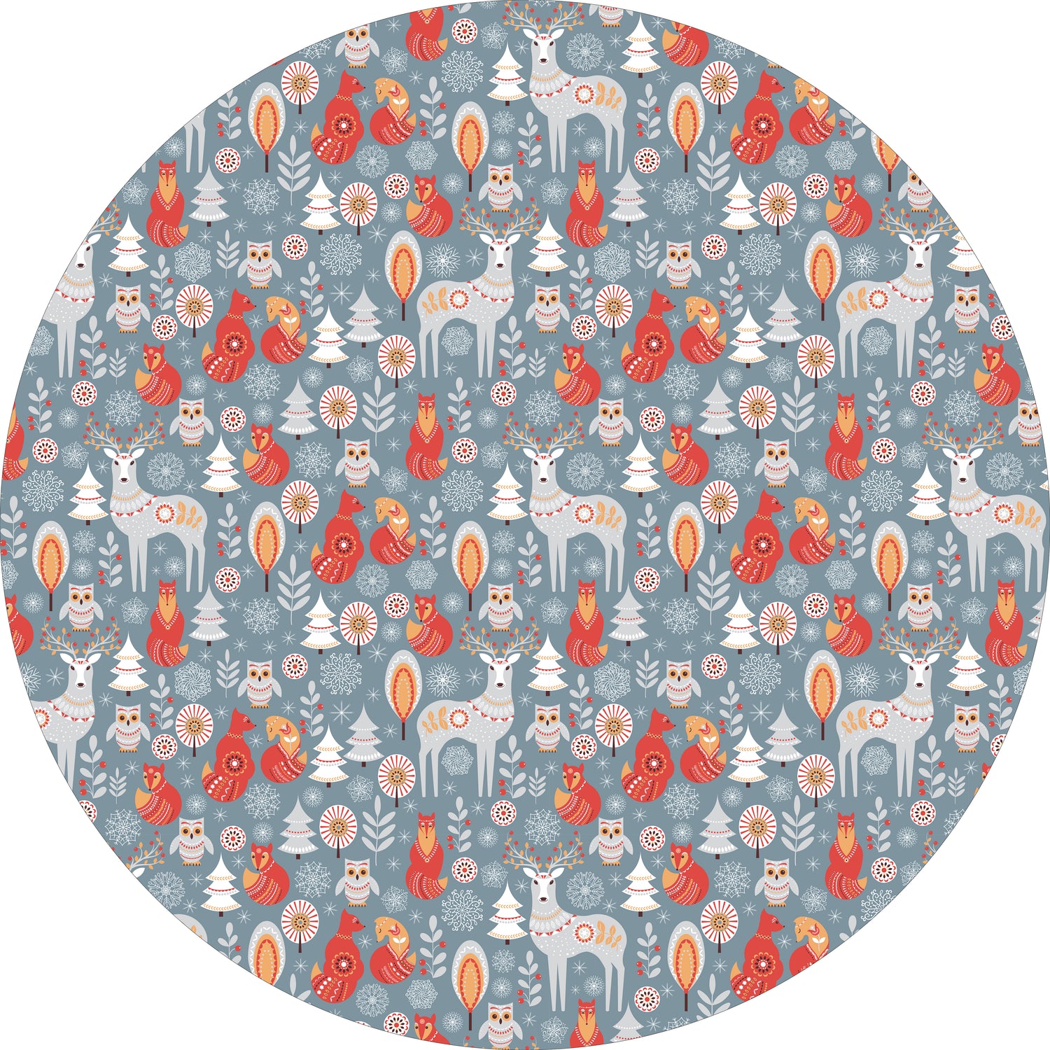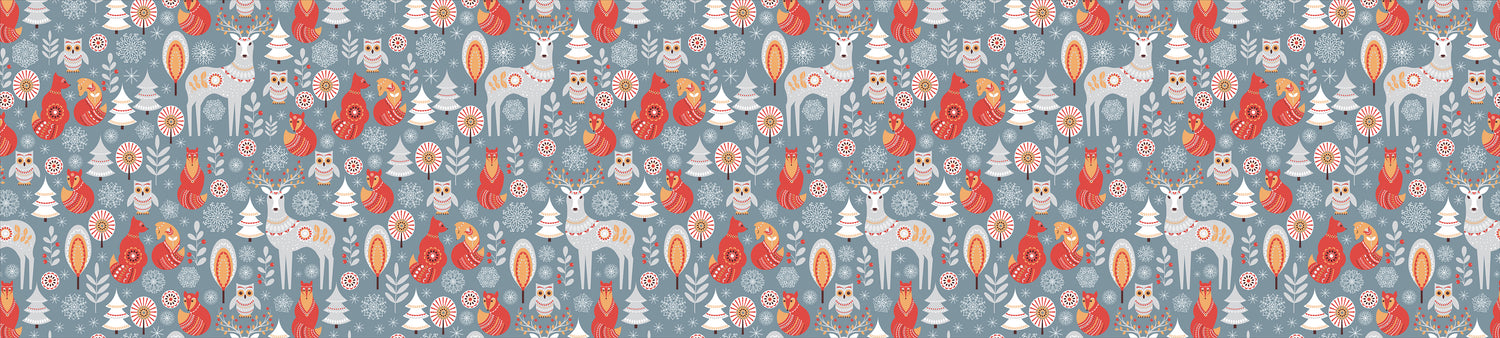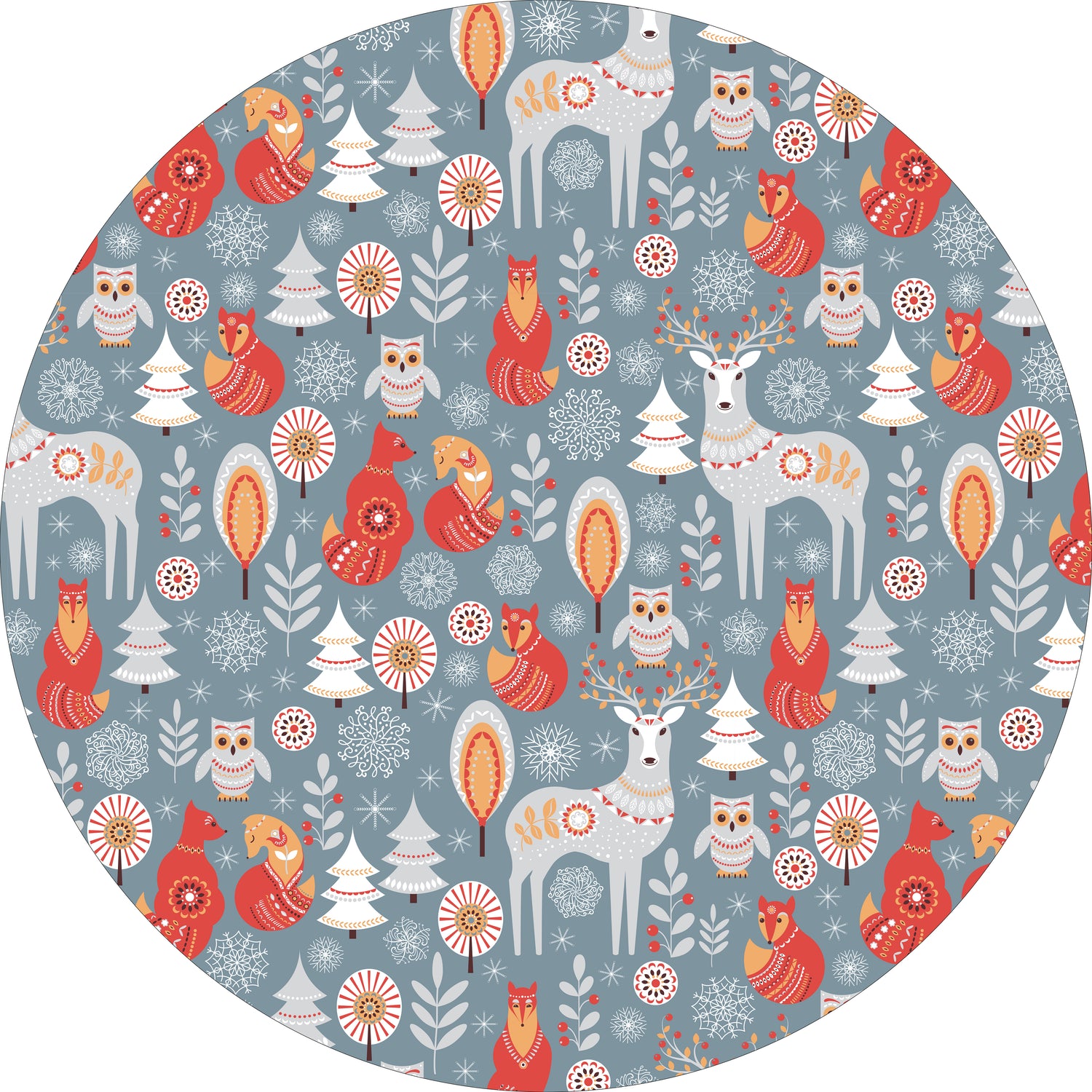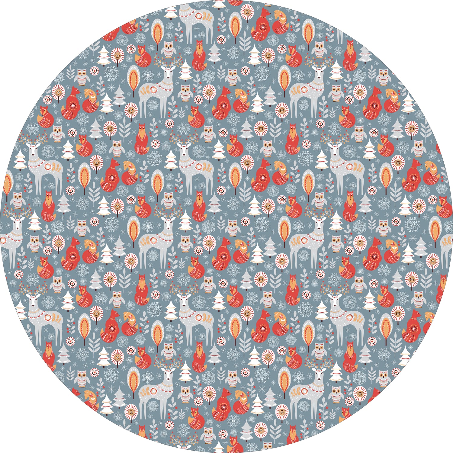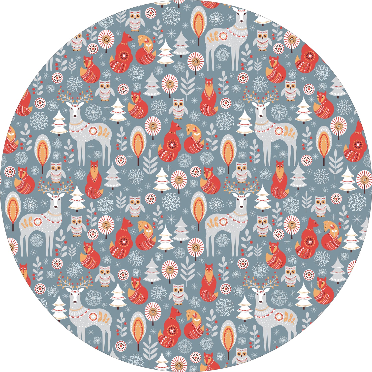 Add a touch of storybook charm to your space with our Folklore Animals Vinyl Mat. Featuring a delightful woodland design with deer, foxes, owls, and festive accents, this mat brings warmth and creativity to any room. Its soft blue background and playful pattern make it a perfect choice for kids’ rooms, entryways, kitchens, or seasonal décor.