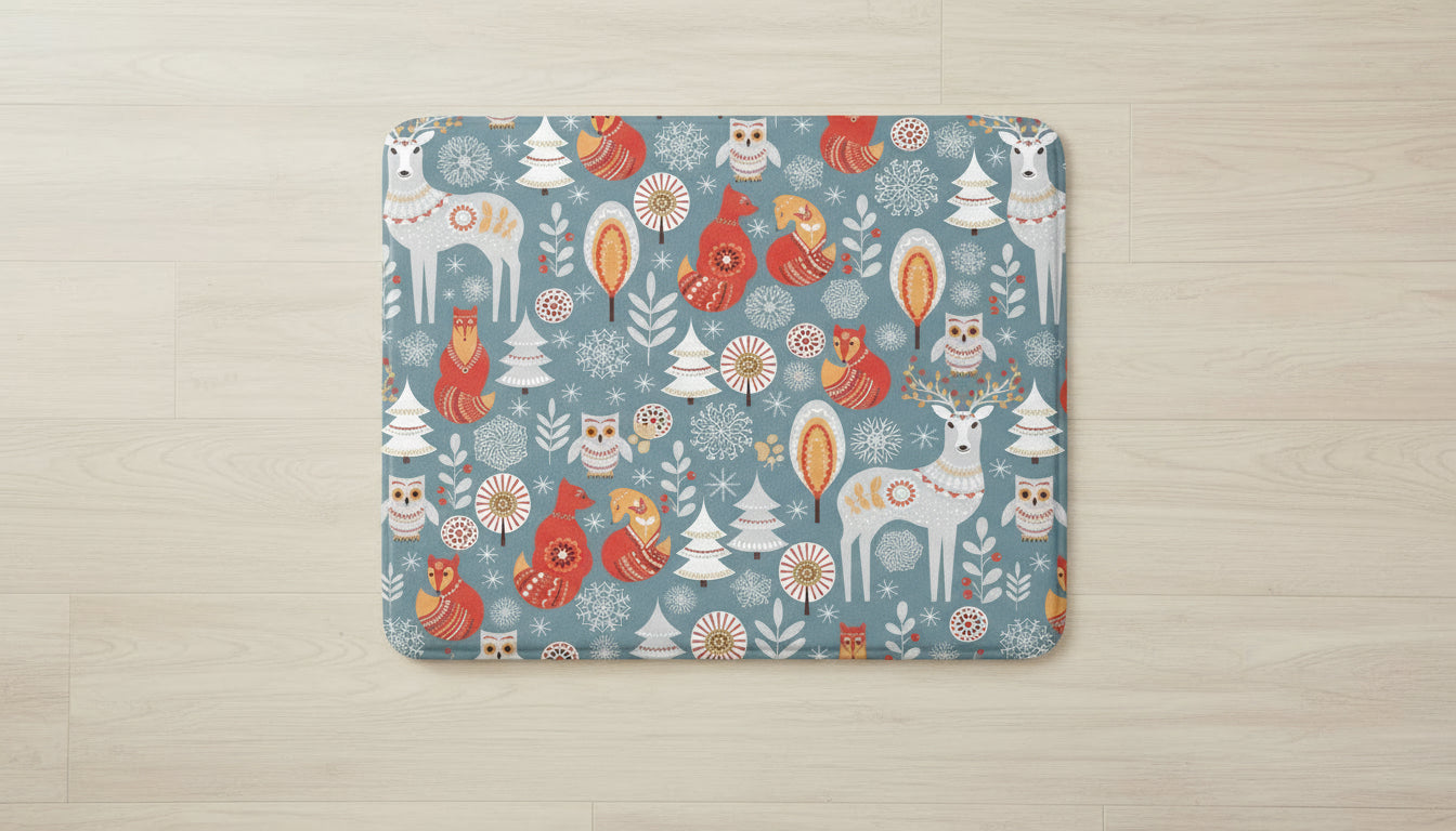 The Folklore Animals Vinyl Mat combines artful design with everyday function. Whether you’re decorating for the holidays or brightening your home year-round, this mat delivers warmth, durability, and a touch of whimsy in every detail.