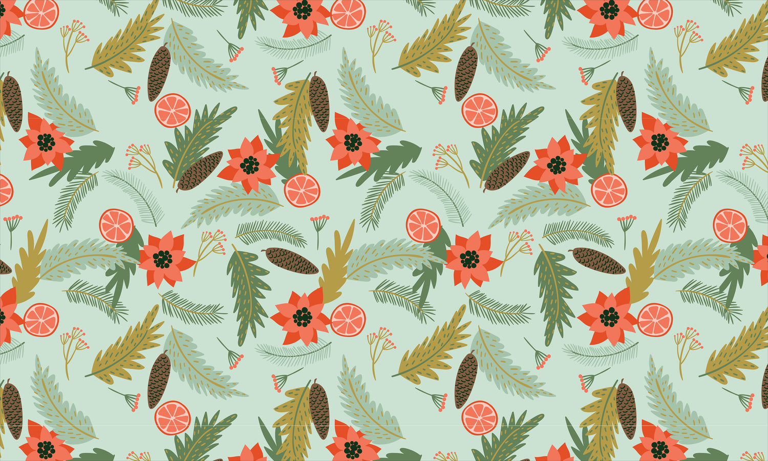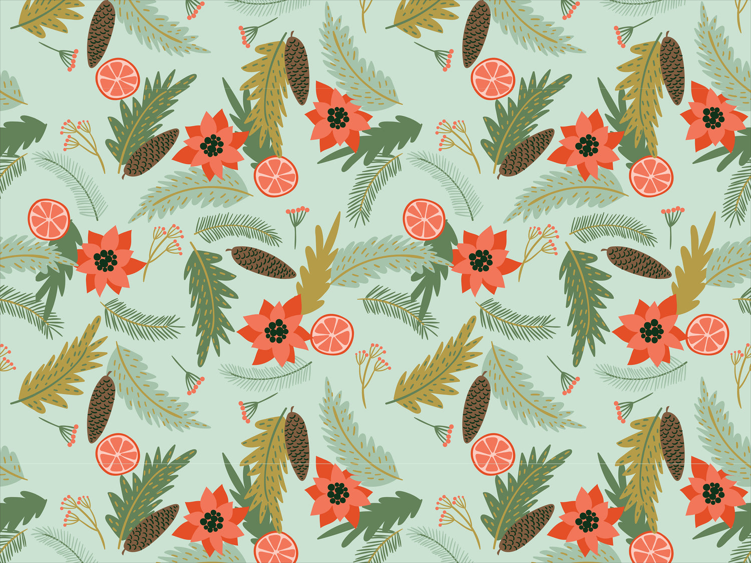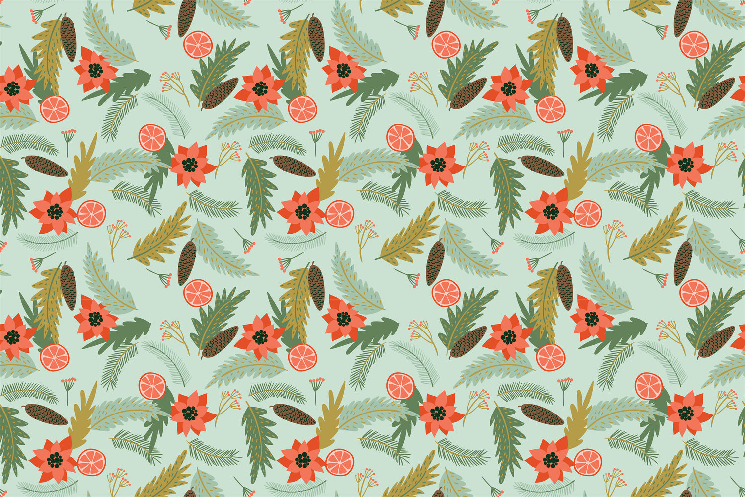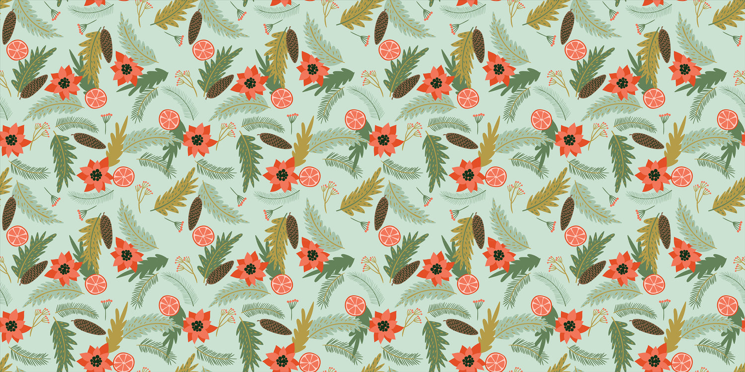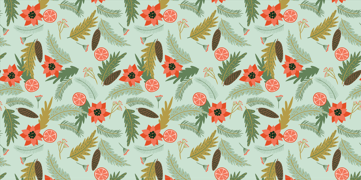 Greet your guests with holiday cheer using our Holiday Pines Vinyl Entry Mat. Designed with festive pine branches, poinsettias, oranges, and pinecones, this mat brings a cozy, natural holiday look to your doorstep or entryway.