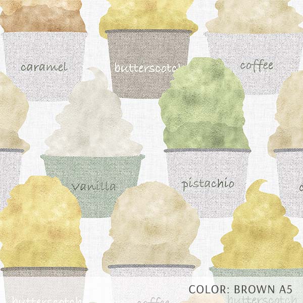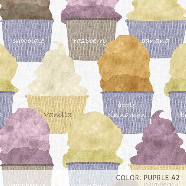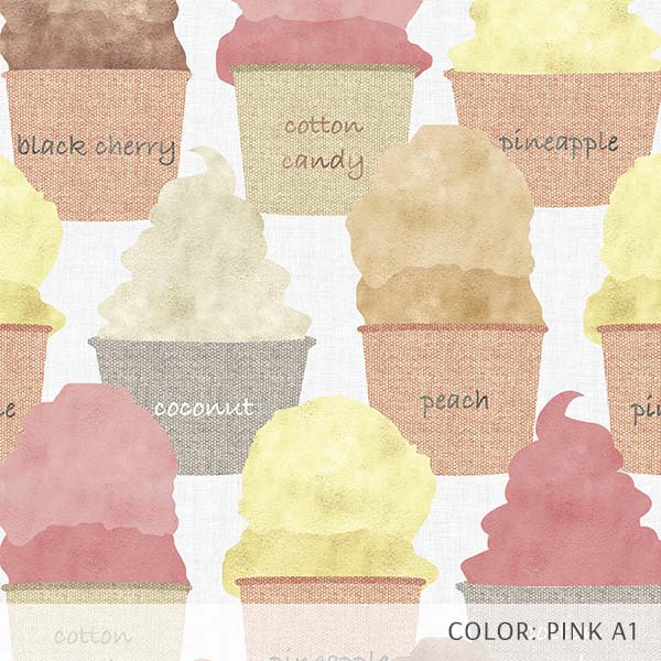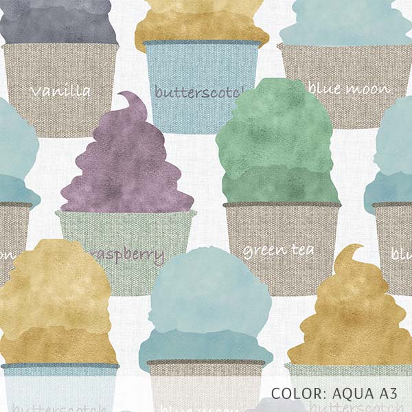 Ice Cream is a fun and artful novelty print perfect for pediatric spaces or dessert shops. Colorful and flavorful, this pattern uses a watercolor technique mixed with a linen texture to create this whimsical design. Perfect for flooring or wallpaper.