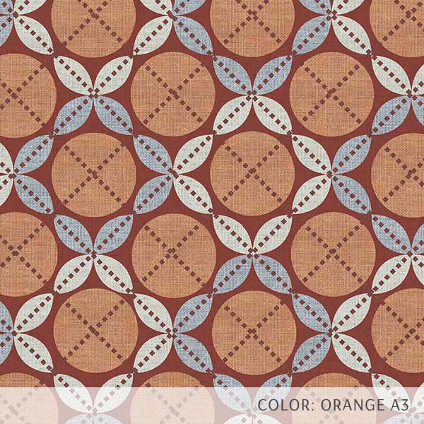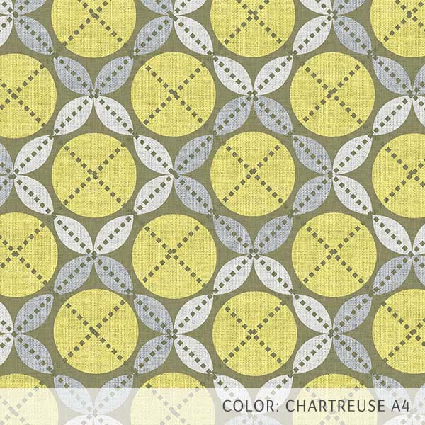 Leaf Ensconced Circle is a fun play on a classic motif. Circles and ovals are held together with squares emulating stitch marks. This pattern is perfect for hospitality and healthcare markets. Use at a large scale for a carpet or at a smaller scale on walls.